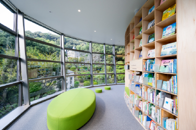 在二楼的免费开放空间“图书馆休息室”和“儿童绘本之森 松山”,您可一边欣赏绿意盎然的美景、眺望大正时期的建筑“万翠庄”,一边享受阅读时光。